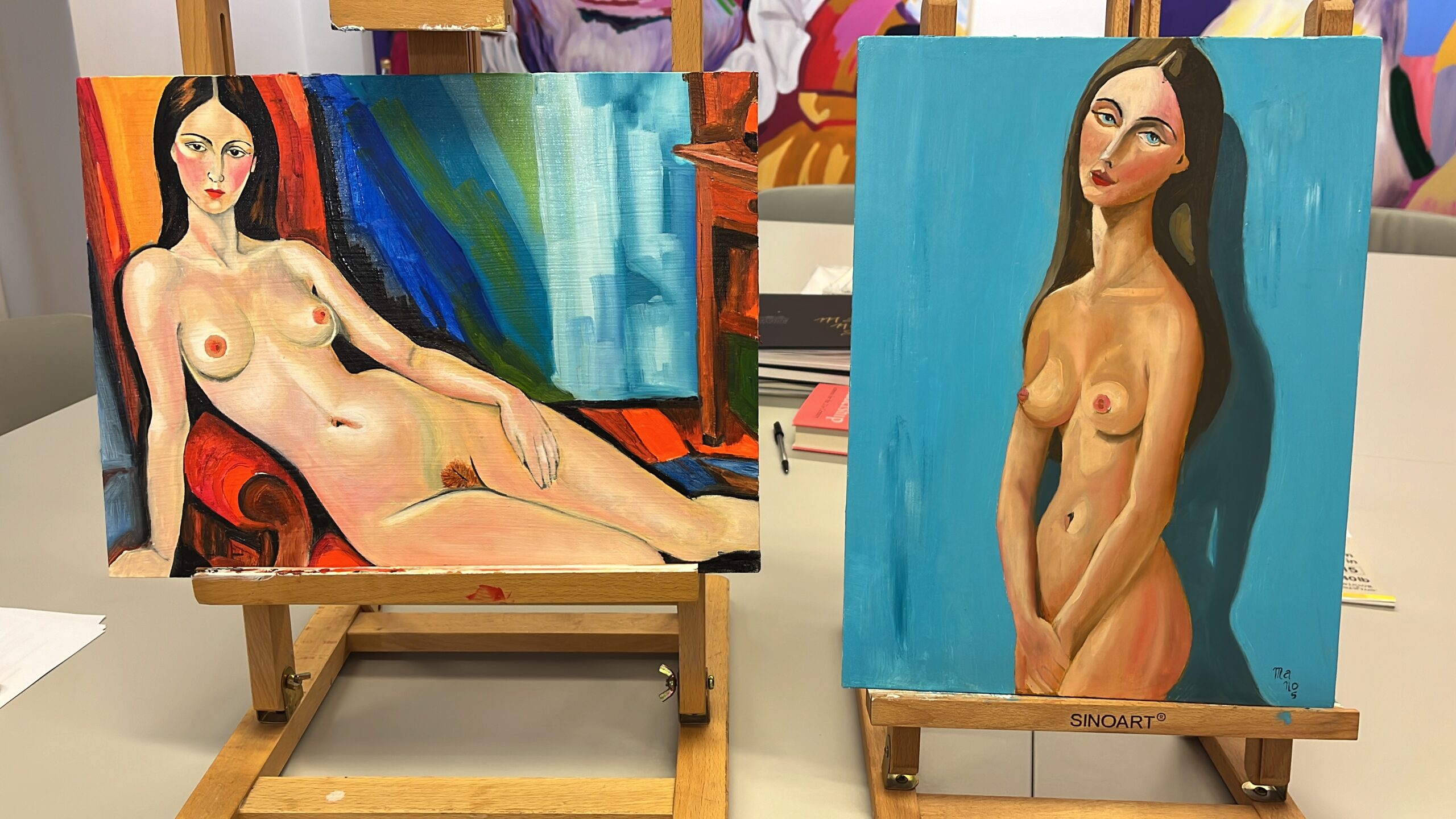 The female figure reclines naturally on the couch, as if she belongs to the very blue that embraces her. The body does not pose; it simply exists. And yet, its stillness hides a silent tension, a gaze that includes us. In this work, painting lets colour tell the story of desire without description—only through presence.